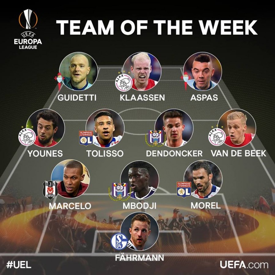 ტრადიციულად, უეფას ევროპა ლიგის მატჩების შემდეგ კვირის სიმბოლური ნაკრები გამოვლინდა. უეფას ოფიციალურ ვებგვერდზე გამოქვეყნებულ კვირის საუკეთესო თერთმეტეულში ძირითადად ამსტერდამის “აიაქსის”, ვიგოს “სელტასა” და ბრიუსელის “ანდერლეხტის” ფეხბურთელები მოხვდნენ.