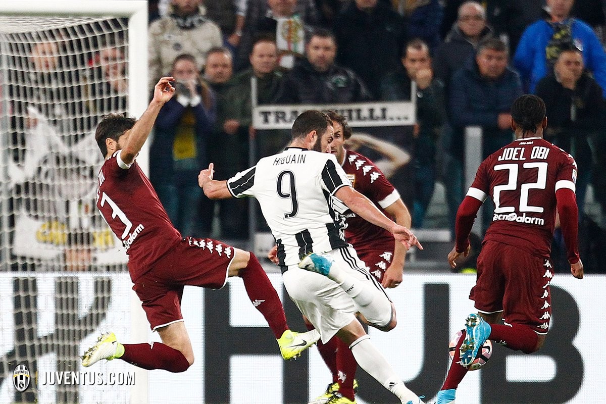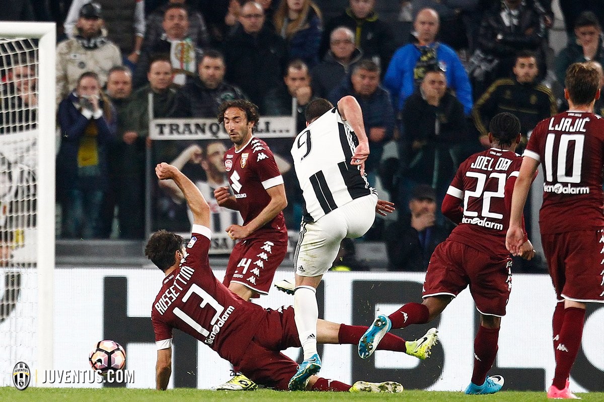 თავიდან ვთქვათ, რომ მასიმილიანო ალეგრიმ ძირითადი შემადგენლობის ნახევარი სასტარტოში არ გაამწესა - ჯორჯო კიელინი, ჯიჯი ბუფონი, მირალემ პიანიჩი, გონსალო იგუაინი, დანი ალვეში. მიუხედავად ამისა, „ბებერმა ქალბატონმა“ პირველივე ტაიმში დიდი უპირატესობა მოიპოვა და გატანა რამდენჯერმე შეეძლო, თუმცა მასპინძლებს საგოლე მომენტების რეალიზება ძალიან უჭირდათ. „ტორინო“ კი, თავის მხრივ სცდილობდა თავი კარგად დაეცვა, რაც რიგ ეპიზოდებში არ გამოსდიოდა, მაგრამ ჯო ჰარტი შეუვალი იყო. ერთხელ ბურთი ხარიხასაც მოხვდა. ანტრაქტის შემდეგ კი, შეხვედრა „ტორინოსთვის“ მატჩი შესანიშნავად განახლდა - ადემ ლიაიჩმა 25 მეტრიდან საჯარიმო დარტყმა დიდოსტატურად შეასრულა და მოძულე მეტოქესთან თავისიანები წინ გაიყვანა. დიდი არ გასულა, სინიშა მიხაილოვიჩის გუნდი კაცნაკლული რომ დარჩა - აკქუამ მარიო მანჯუკიჩის წინააღმდეგ იუხეშა და მეორე ყვითელი ბარათი გაუწითლდა. თუმცა, აღვნიშნოთ, რომ განელმა ფეხბურთელმა ჯერ ბურთზე ითამაშა, ამიტომაც სერბი სპეციალისტი ძალზე გაცხარდა, მოედანზე შევარდა და პაოლო ვალერის მივარდა - მიხაილოვიჩსაც ტრიბუნაზე მოუწია გადანაცვლება.