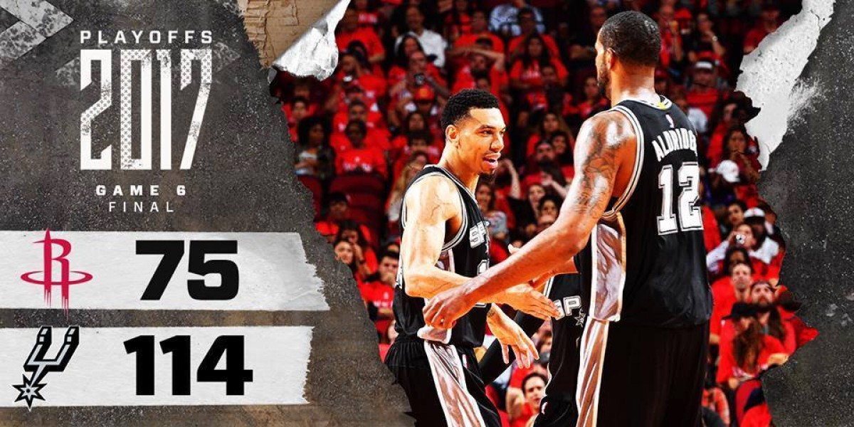 “სან ანტონიომ” სერიის მე-6 შეხვედრაში “ჰიუსტონი” გასვლაზე 114:75 გაანადგურა. გრეგ პოპოვიჩის შეგირდებმა სერია 4:2 მოიგეს. დასავლეთ კონფერენციის ფინალში ზაზა ფაჩულიას “გოლდენ სტეიტ უორიორსს” სწორედ “სან ანტონიო სპურსი” დაუპირისპირდება.