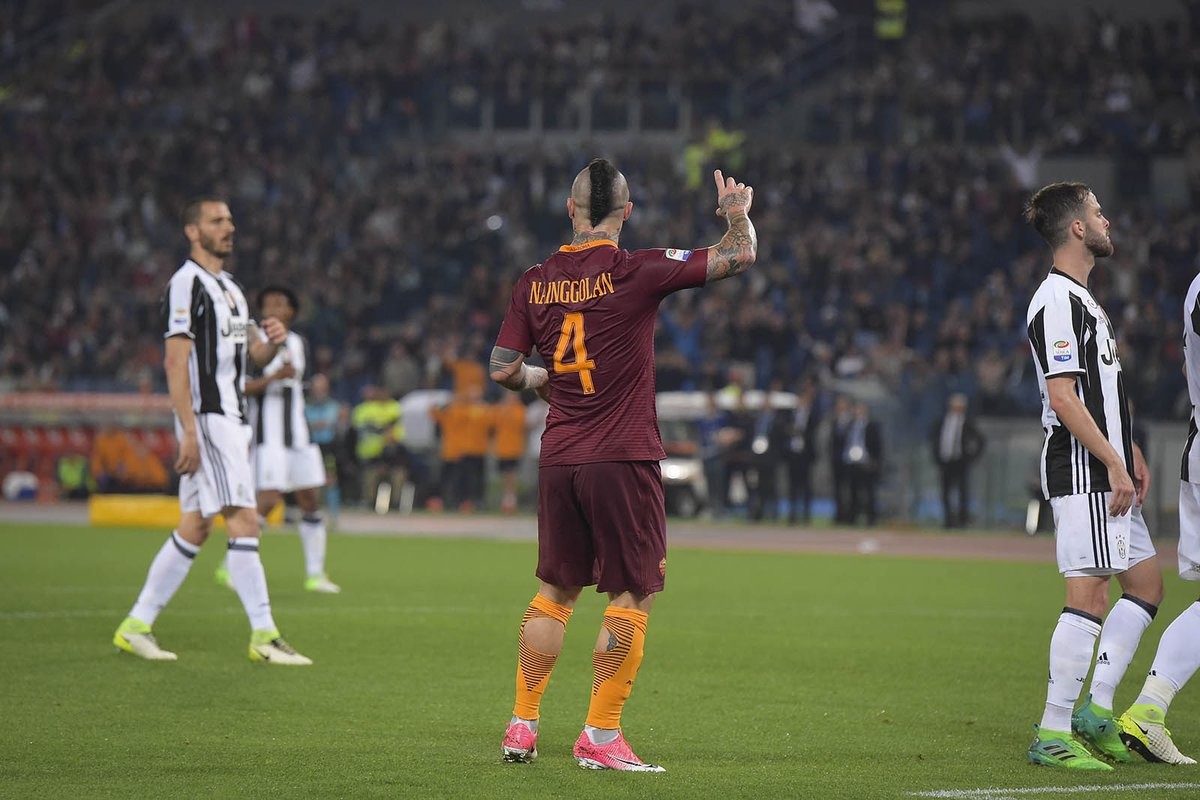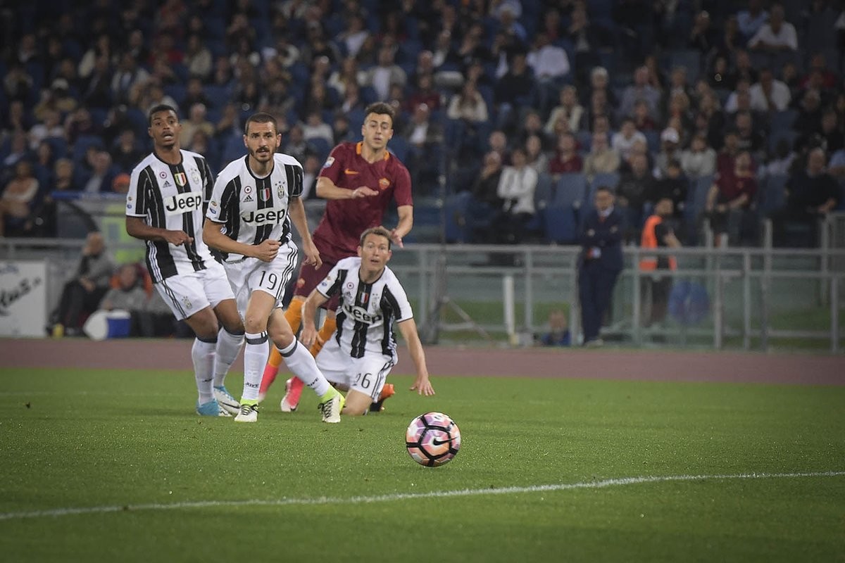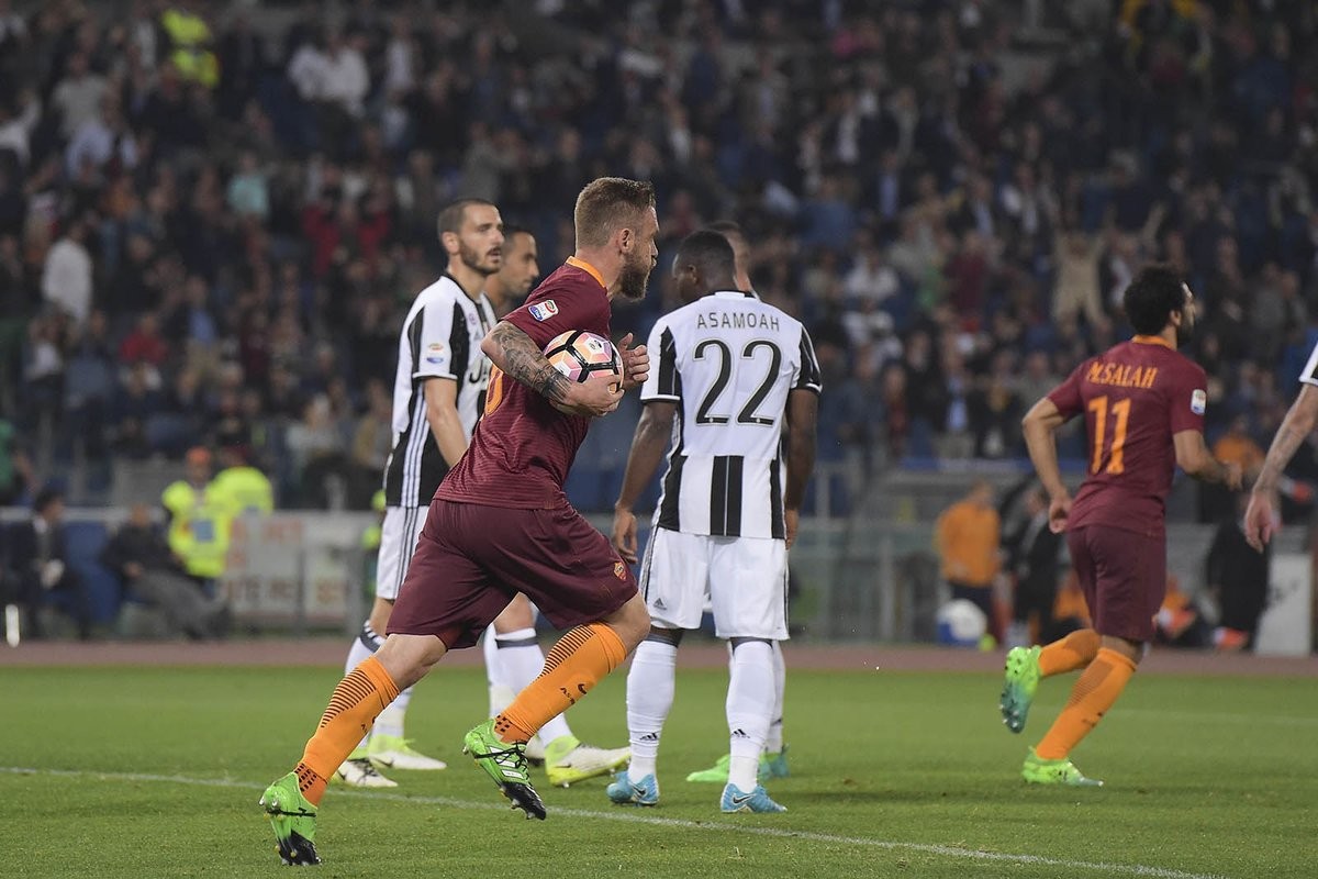 არადა, „სტადიო ოლიმპიკოზე“ ყველაფერი „იუვესთვის“ სასიკეთოდ დაიწყო: სტეფანო სტურაროსა და გონსალო იგუაინის კარგი კომბინაცია გოლით მარიო ლემინამ დაასრულა და ტურინელები დააწინაურა. აქვე გეტყვით, რომ მასიმილიანო ალეგრიმ სანახევროდ სათადარიგო ფეხბურთელები ათამაშა, რადგან წინ კოპა იტალიის ფინალია და როგორც ტურინში, სკუდეტოს დაკარგვის შიში სულაც არ აქვთ. ახლა, ისევ „ოლიმპიკოზე“ განვითარებულ მოვლენებს დავუბრუნდეთ - „რომამ“ მალევე გაათანაბრა. კუთხურის შემდეგ სტუმართა დაცვა მთლიანად ჩავარდა და დანიელე დე როსიმ იქამდე ურტყა ბუფონის კარში, სანამ გოლი არ გაიტანა. სხვათა შორის, დანიელემ ზედიზედ მესამე შეხვედრაში გამოიჩინა თავი და მის კარიერაში ასეთი რამ პირველად მოხდა. ტაიმიც ასე დასრულდა - 1:1.