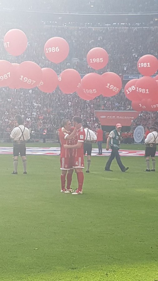 „ალიანც არენაზე“ სევდანარევი სიხარული სუფევდა. „ბაიერნმა“ ჩემპიონის ტიტული მოიპოვა და მატჩის დასრულების შემდეგ „ვერცხლის სინიც“ აღმართა - ფილიპ ლამმა და ჩაბი ალონსომ ერთად. ფეხბურთელებმა ერთად, რომლებმაც კარიერაში ბოლო თამაში ჩაატარეს. სწორედ ამიტომ იყო სევდანარევი სიხარული. ხუმრობა საქმე ხომ არაა, ფეხბურთიდან ისეთი დიდი ფიგურები ერთად წავიდნენ, როგორებიც ფილიპი და ჩაბია. მათ გარდა, გეტყვით, რომ კარიერა ვეტერანმა მეკარემ ტომ შტარკემაც დაასრულა. თავის მხრივ, ცუდი დღე ჰქონდა რობერტ ლევანდოვსკის, რომელმაც მოედანი უგოლოდ დატოვა და ბომბარდირის ტიტულიც ხელიდან გაუშვა. „ბაიერნმა“ საბოლოოდ, „ფრაიბურგი“ 4:1 გაანადგურა და სეზონი 82 ქულით დაასრულა და გერმანიის ჩემპიონი მიჯრით მეხუთედ გახდა. თავის მხრივ, „ფრაი“, რომელიც ძალზე ახლოს იყო ევროპა ლიგის საგზურთან, მეშვიდე ადგილს დასჯერდა, რაც ევროსაგზურს არ იძლევა.