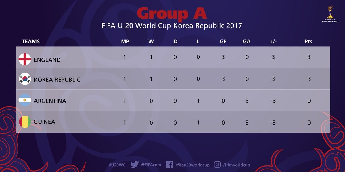 ამავე ჯგუფის მეორე მატჩიც ჩენჯუში შედგა და მასპინძელმა სამხრეთ კორეამ გვინეის ნაკრებს იმავე ანგარიშით მოუგო, როგორც ინგლისმა არგენტინას. შესაბამისად, პირველი ტურის მერე ორი ლიდერი გამოიკვეთა, თუმცა არგენტინის ნაკრების ჩამოწერა ჯერ მაინც ნაადრევი იქნება.