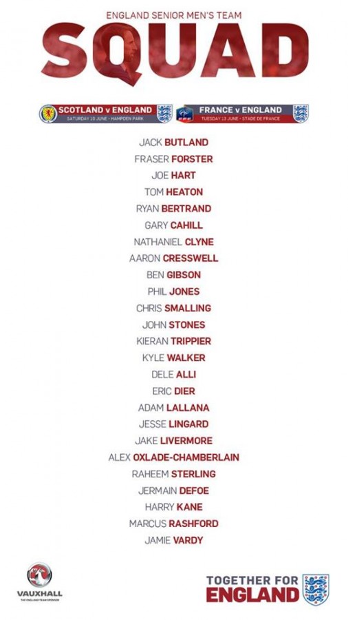ინგლისის ეროვნული ნაკრების მთავარმა მწვრთნელმა გარეტ საუთგეიტმა შოტლანდიასთან და საფრანგეთთან გასამართი მატჩებისთვის 25 კაციანი შემადგენლობა დაასახელა. გაფართოებულ სიაში ვერ მოხვდა "მანჩესტერ იუნაიტედის" და "სამი ლომის" კაპიტანი უეინ რუნი. საუთგეიტის განცხადებით, ფეხბურთელი სათანადო ფორმაში არ იმყოფება.