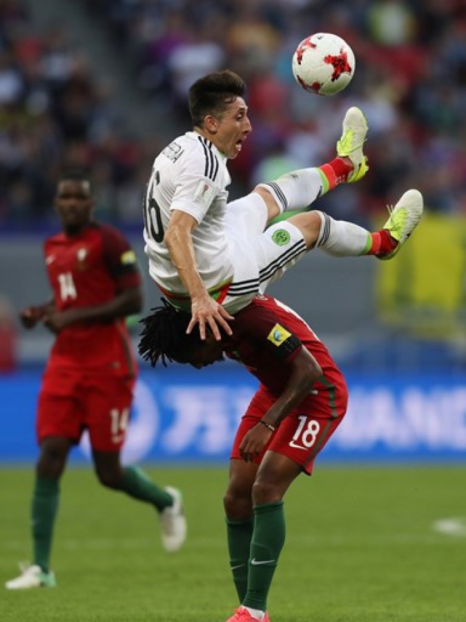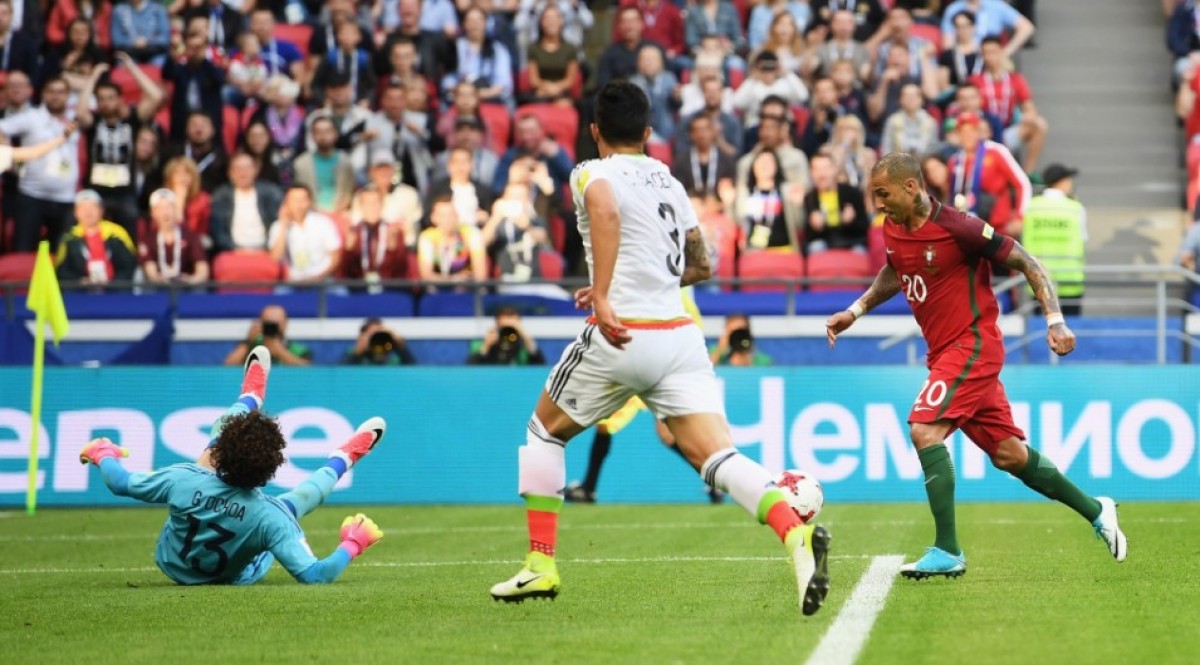 კრიშტიანუ რონალდუს დიდებული პასის შემდეგ რიკარდო კვარეჟმამ იხერია. რა თქმა უნდა, რონალდუს პასიც გამოსარჩევი იყო, მაგრამ მეკარესთან პირისპირ დარჩენილმა „ბეშიქთაშის“ თავდამსხმელმა მაღალი კლასი გამოავლინა და გაიტანა. მექსიკა გონს მალევე მოვიდა და გაათანაბრა. კომბინაცია კი, დიდებული იყო - ხიმენესმა საჯარიმოში ჩააწოდა, სადაც კაროს ველამ ხავიერ ერნანდესი მოძებნა და ჩიჩარიტომაც თავით კუთხეში ჩააჭედა ბურთი. ისე, მექსიკელთა ეს შეტევა გოლით ვერ დასრულდებოდა, რომ არა რაფაელ გუერეიროს უხეში შეცდომა. შესაბამისად, გუნდები ანტრაქტზე საყაიმო ანგარიშით გავიდნენ. აღსანიშნავია, რომ მე-19 წუთზე პეპემ გოლი გაიტანა, მაგრამ საქმეში ვიდეო რეფერი ჩაერია და თამაშგარე მდგომარეობის გამო გოლი გააუქმა. ამას შეიძლება ისტორიული მოვლენაც ვუწოდოთ, რადგან ასეთ დონეზე პირველად მოხდა, რომ გადაწყვეტილებას მიღება ვიდეო რეფერის მიანდეს...