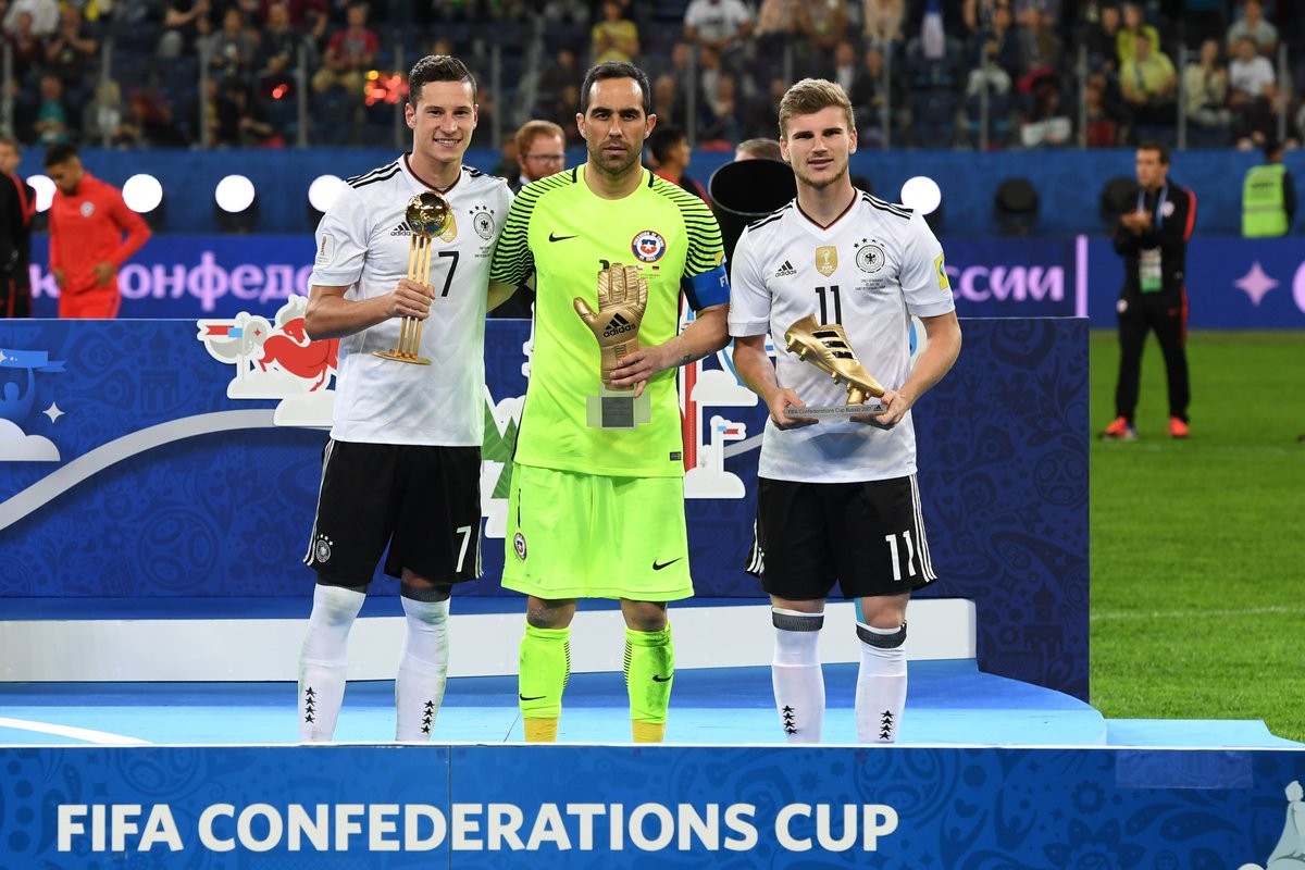 ფიფას კონფედერაციათა თასის საუკეთესო ფეხბურთელად გერმანელი იულიან დრაქსლერი დასახელდა, საუკეთესო მეკარედ ჩილელი კლაუდიო ბრავო აღიარეს, ხოლო საუკეთესო ბომბარდირი გერმანელი ტიმო ვერნერი გახდა 3 გოლით. სხვათა შორის, მის მსგავსად 3-3 გოლი ლეონ გორეცკამ და ლარს შტინდლმაც გაიტანეს, მაგრამ „ლაიპციგის“ ფორვარდს ერგო ოქროს ბუცი, რადგან 3 გოლთან ერთად ტურნირზე 2 საგოლე გადაცემაც მიითვალა.