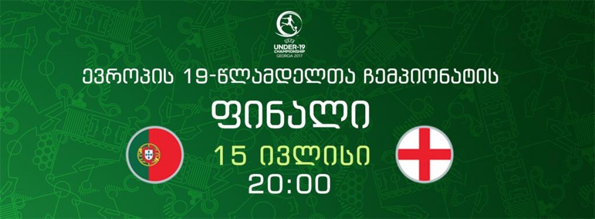 ევროპის ჩემპიონატის ფინალში ერთმანეთს პორტუგალიისა და ინგლისის 19 წლამდე ნაკრები გუნდები შეხვდებიან. მატჩი 15 ივლისს, გორში, თენგიზ ბურჯანაძის სახელობის სტადიონზე, 20:00 საათზე დაიწყება.