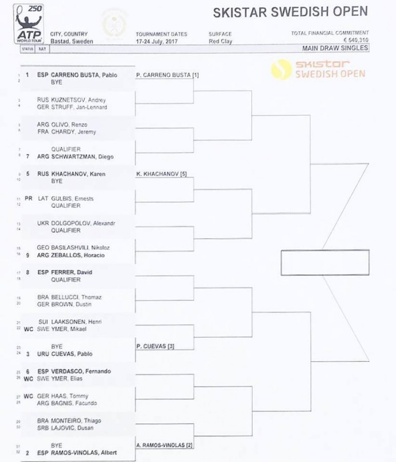 ტურნირის პირველი ნომერი პაბლო კარენო ბუსტაა, ხოლო მეორე ნომერი - მოქმედი ჩემპიონი ალბერტ რამოს ვინიოლასი. შვედეღის ღია ჩემპიონატის საპრიზო ფონდი 482, 060 ევრო იქნება.
