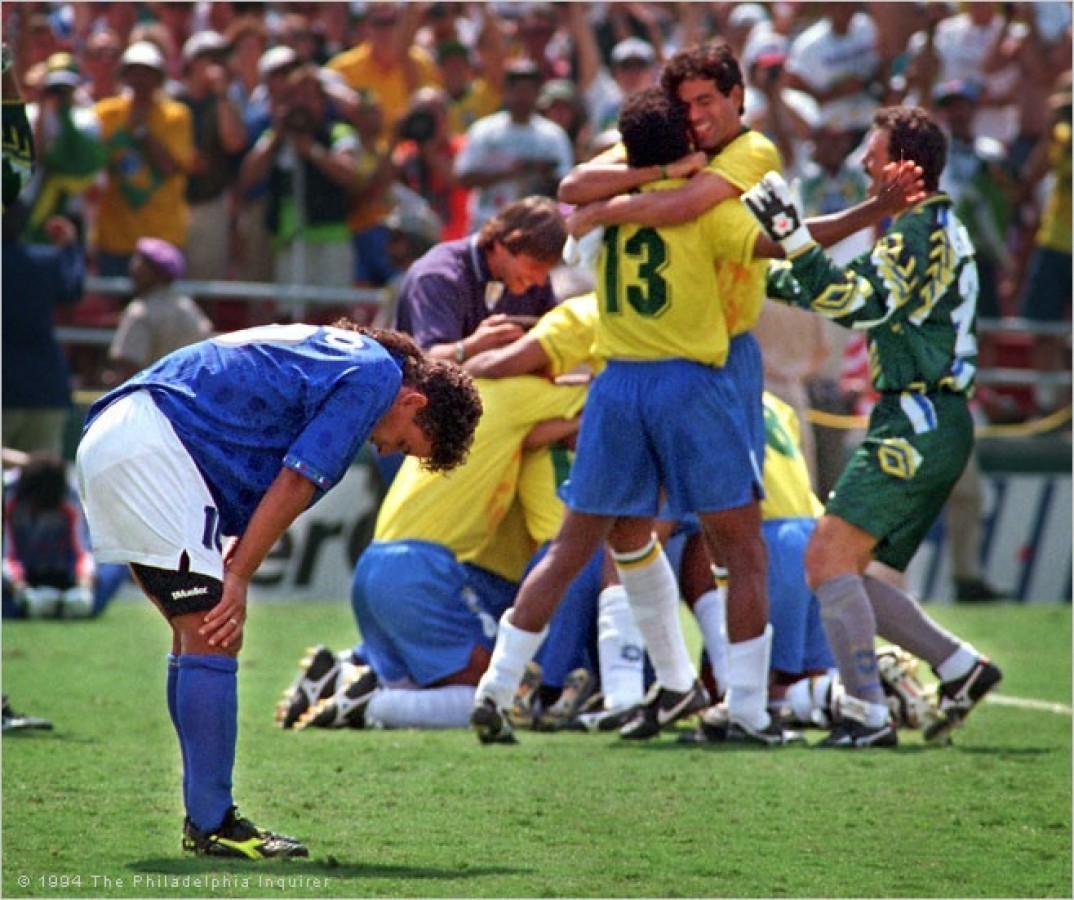 1994. აშშ-ის მსოფლიოს მეთხუთმეტე ჩემპიონატი ფეხბურთში. ფინალი: ბრაზილია-იტალია 0:0; პენალტებით ბრაზილიელებმა 3:2 მოიგეს. მატჩის შემდეგ თერთმეტმეტრიანი დარტყმები გაიტანეს რომარიომ, ბრანკომ, დუნგამ (ბრაზილია) და ალბერტინიმ და ევანმა (იტალია). თერთმეტმეტრიანები ვერ გაიტანეს მარსიო სანტუშმა (ბრაზილია) და ბარეზიმ, მასარომ და რობერტო ბაჯომ (იტალია). ბრაზილია (ნაკრებს კარლოს ალბერტო პარეირა წვრთნიდა): ტაფარელი, ჟორჟინიო (კაფუ), მარსიო სანტუში, ალდაირი, ბრანკო, მაზინიო, ზინიო (ვიოლა), მაურო სილვა, დუნგა, რომარიო, ბებეტო. იტალია (ნაკრებს არიგო საკი წვრთნიდა): პალიუკა, მუსი (აპოლონი), ბარეზი, ბენარივო, მალდინი, ბერტი, დ. ბაჯო (ევანი), ალბერტინი, დონადონი, რ. ბაჯო, მასარო. ლოს ანჯელესის “როუზ ბოულზე” მატჩს 94 194 მაყურებელი დაესწრო. შეხვედრას უნგრელი არბიტრი შანდორ პული სჯიდა.