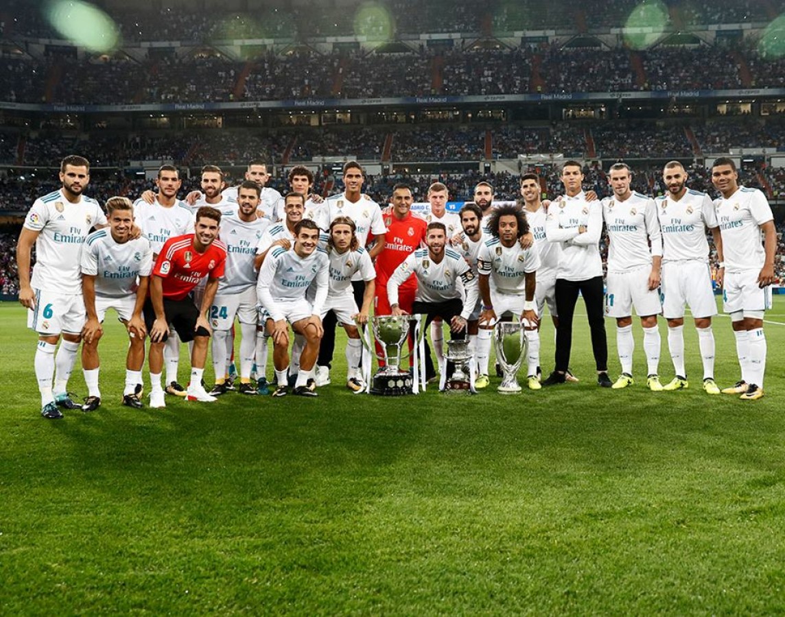 თამაშის დაწყებამდე, "რეალმა" გულშემატკივრებს ლა ლიგის, ესპანეთის და უეფას სუპერთასების მოგებული თასები წარუდგინა.