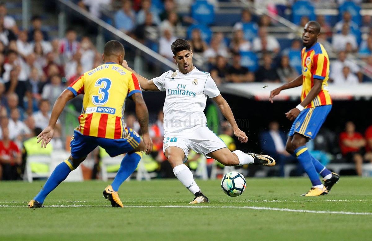 შეხვედრა მაღალ ტემპში დაიწყო. თავიდანვე ის გამოჩნდა, რაც თავიდანვე იყო მოსალოდნელი: “რეალმა” ბურთი დაიჭირა და პოზიციურ შეტევებზე დაიწყო თამაში, ხოლო “ვალენსიამ” თავიდანვე უკან დაიხია, დაცვაში ზონების გადაკეტვას შეეცადა და კონტრშეტევებით გადაწყვიტა ფონს გასვლა. “სანტიაგო ბერნაბეუზე” შეკრებილმა პუბლიკამ გატანილი გოლები შეხვედრის დასაწყისშივე იხილა: მე-10 წუთზე როდრიგო მორენომ საკუთარ ნახევარზე მარკო ასენსიოს ჩააბარა ბურთი, რომელმაც ოდნავ წინ წაიწია და მისთვის უკვე ჩვეული ჯადო დარტყმით ნეტო გააშეშა. გაშვებულ გოლს “ღამურები” არ დაუბნევია, მწყობრად განაგრძეს თამაში და მე-18 წუთზე ძალიან ლამაზი კომბინაციით წონასწორობა აღადგინეს: ხოსე ლუის გაიამ მარცხენა ფლანგზე ორი მოთამაშე მიიტყუა და სივრცე ტონი ლატოს გაუთავისუფლა, რომელსაც გაიამ ბურთი დროულად გააყოლა, ლატომ კი კარის გასვრივ დაბალი გადაცემა გააკეთა და კარლოს სოლერმა ანგარიში გაათანაბრა.