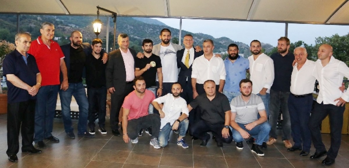სპორტისა და ახალგაზრდობის საქმეთა მინისტრი ტარიელ ხეჩიკაშვილი მცხეთაში, რესტორან ქართული ღვინის პალატაში მსოფლიო ჩემპიონატიდან დაბრუნებულ მოჭიდავეებს შეხვდა.
