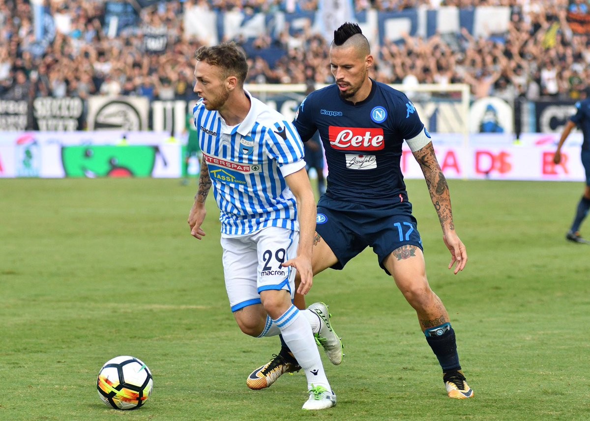 თუმცა, “იუვე” უკონკურენტო და უდავო ფავორიტი მაინც არაა. “ნაპოლისაც” ექვსიდან ექვსი გამარჯვება აქვს და “ნაპოლიმ” პირადი ისტორია დაწერა. საქმე ისაა, რომ ნეაპოლიტანელებს აქამდე იტალიის ჩემპიონატის სტარტზე ზედიზედ 6 თამაში არასდროს მოუგიათ. მაურიციო სარის ბიჭებს მეექვსე გამარჯვება ბევრი ოფლის დაღვრად მოუწიათ: დებიუტანტი “სპალი” მრისხანე მეტოქეს მედგრად დაუდგა – თავიდან სკიატარელას გოლით იგებდა კიდეც, მაგრამ 57 წამში ლორენცო ინსინიემ გაათანაბრა. მთავარი მოვლენები მაინც თამაშის ბოლოს დატრიალდა. ჯერ კალეხონმა შეაგდო, მერე მასპინძლებმა გაათანაბრეს. 3 ქულა “ნაპოლის” ფაუზი გულამმა მოუტანა. “ნაპოლი” 100%-იანია და “ნაპოლი” “იუვენტუსთან” ერთად სხვებს ზემოდან დაჰყურებს.