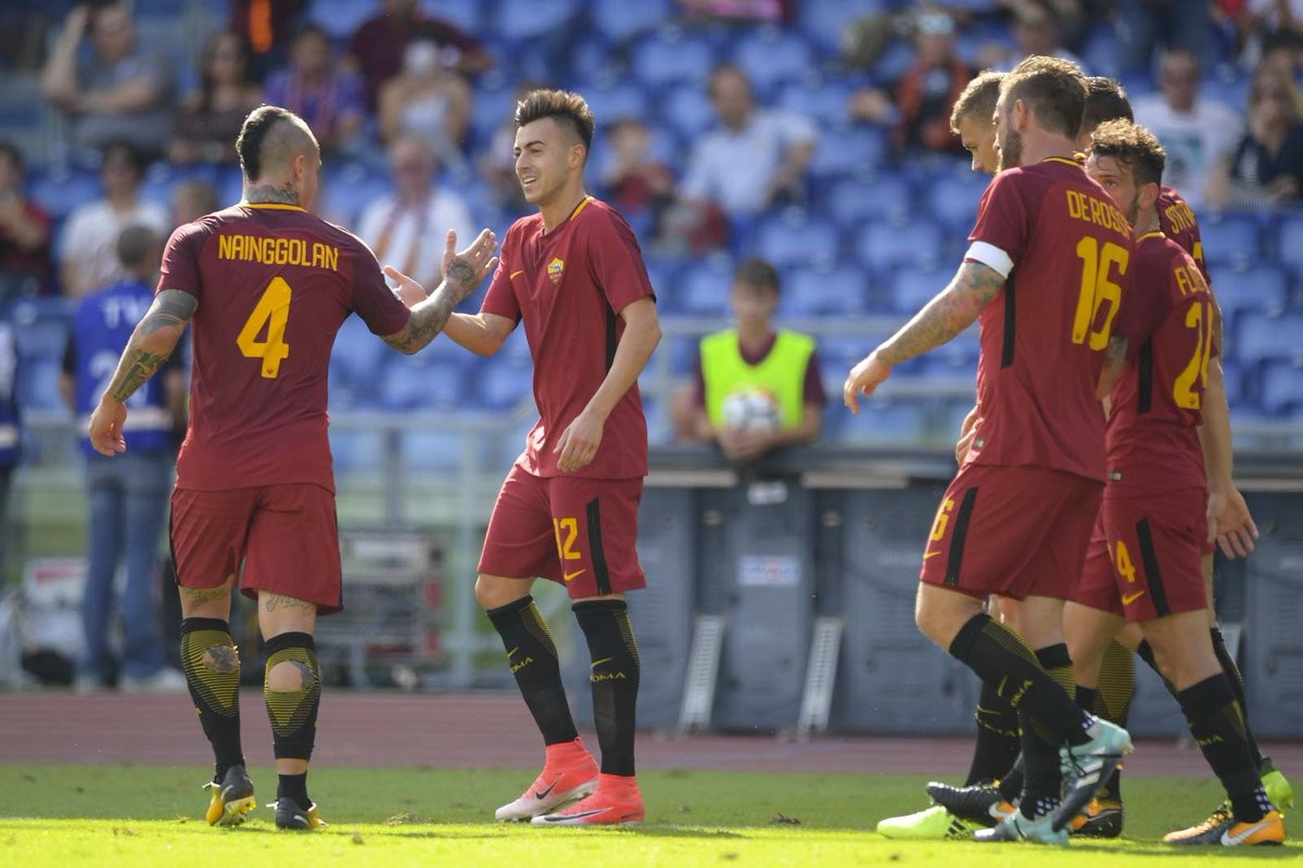 “რომა” (4-3-3): ალისონი; ფლორენცი (ბრუნო პერესი 78), მანოლასი, ფაციო, კოლაროვი (მორენო 74); ნაინგოლანი, დე როსი, სტროტმანი; პეროტი, ჯეკო (დეფრელი 71), ელ შაარავი