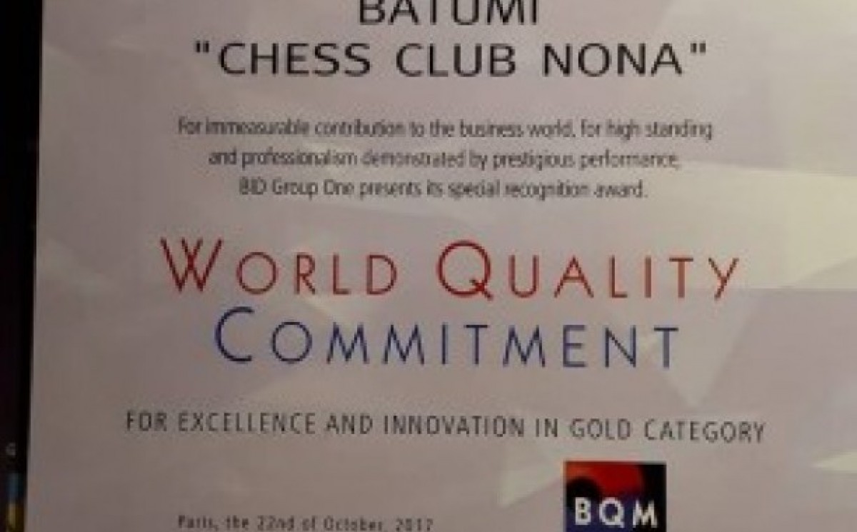 ევროპის ჩემპიონი, ბათუმის საჭადრაკო კლუბი "ნონა", სწორად წარმართული სტრატეგიისა და ეფექტური მენეჯმენტისთვის, ბიზნეს საინიციატივო კომიტეტის მიერ პარიზში ჩატარებულ საერთაშორსო ხარისხის კონფერენციაზე "ოქროს ვარსკვლავით" დაჯილდოვდა.