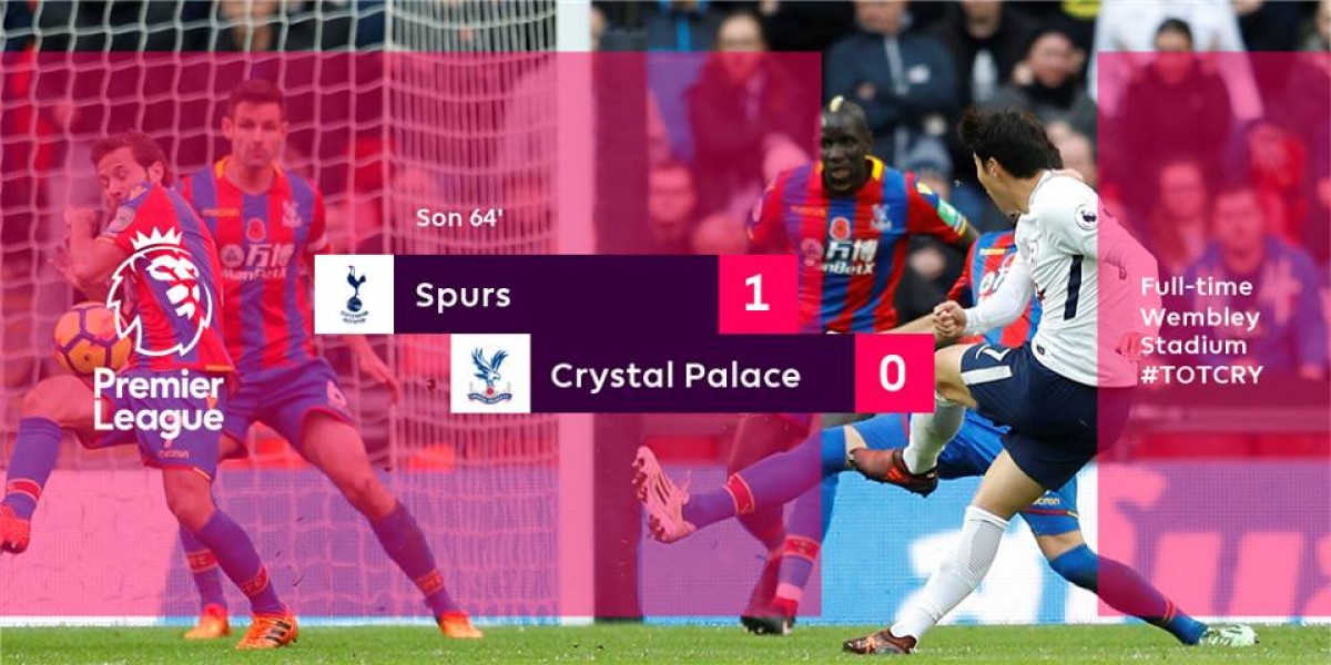 “ტოტენჰემი”, რომელმაც შუა კვირაში მადრიდის “რეალი” დაამარცხა (3:1), “უემბლიზე” თანაქალაქელ “კრისტალ პალასს” დაუხვდა, სონის გოლით აჯობა და ქულებით “მანჩესტერ იუნაიტედს” გაუთანაბრდა.