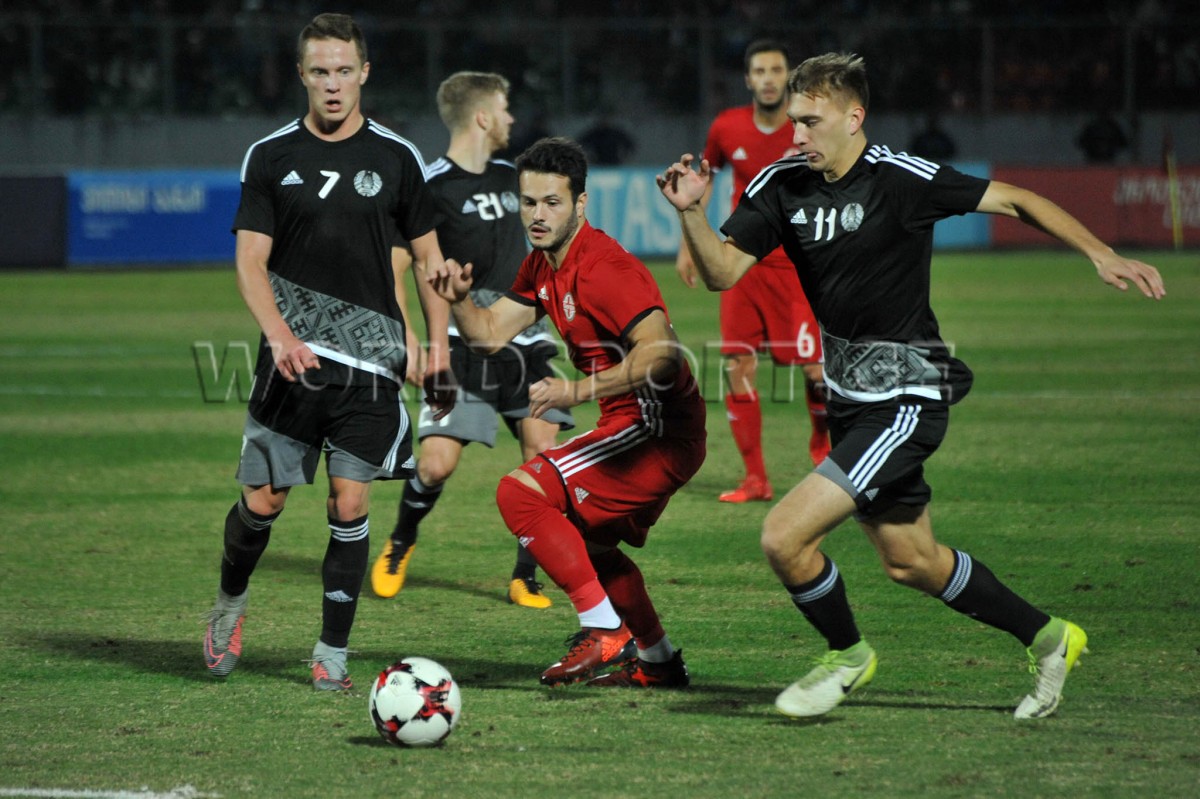 კვიპროსთან მოგების შემდეგ, ვლადიმირ ვაისმა შვიდი ფეხბურთელი შეცვალა ძირითად შემადგენლობაში. წინა თერთმეტეულიდან, ამჯერად მხოლოდ გურამ კაშიამ, დავით ხოჭოლავამ, ჯაბა კანკავამ და გიორგი პაპუნაშვილმა დაიწყეს.