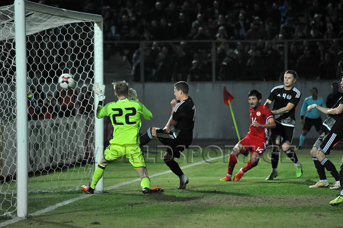 ამ კუთხურს კი გოლი მოჰყვა: ლაშა შერგელაშვილმა ჩააწოდა და ლაშა დვალმა ვარდნაში თავურით წინ გაიყვანა თავისიანები – 2:1. ეს დვალის პირველი გოლია ეროვნულ ნაკრებში. იშვიათად უწევს თამაში და აი, გამოიყენა შანსი.
