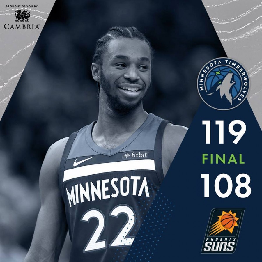 “მინესოტამ” შინ “ფინიქსი” 119:108 დაამარცხა. მატჩის სტარტზევე მინესოტელები დაწინაურდნენ, მეორე პერიოდში “ფინიქსმა” 3 ქულით წინ გასვლა კი მოახერხა, თუმცა ეს იყო და ეს... ამის შემდეგ მატჩის რიტმს “ტიმბერვულვზი” აკონტროლებდა. შეხვედრის საუკეთესო მოთამაშედ კარლ-ენტონი თაუნსი დაასახელეს, რომელმაც გუნდს 32 ქულა და 12 მოხსნა შესძინა. “ფინიქსში” ჯეიმსი 26 ქულით გამოირჩა.