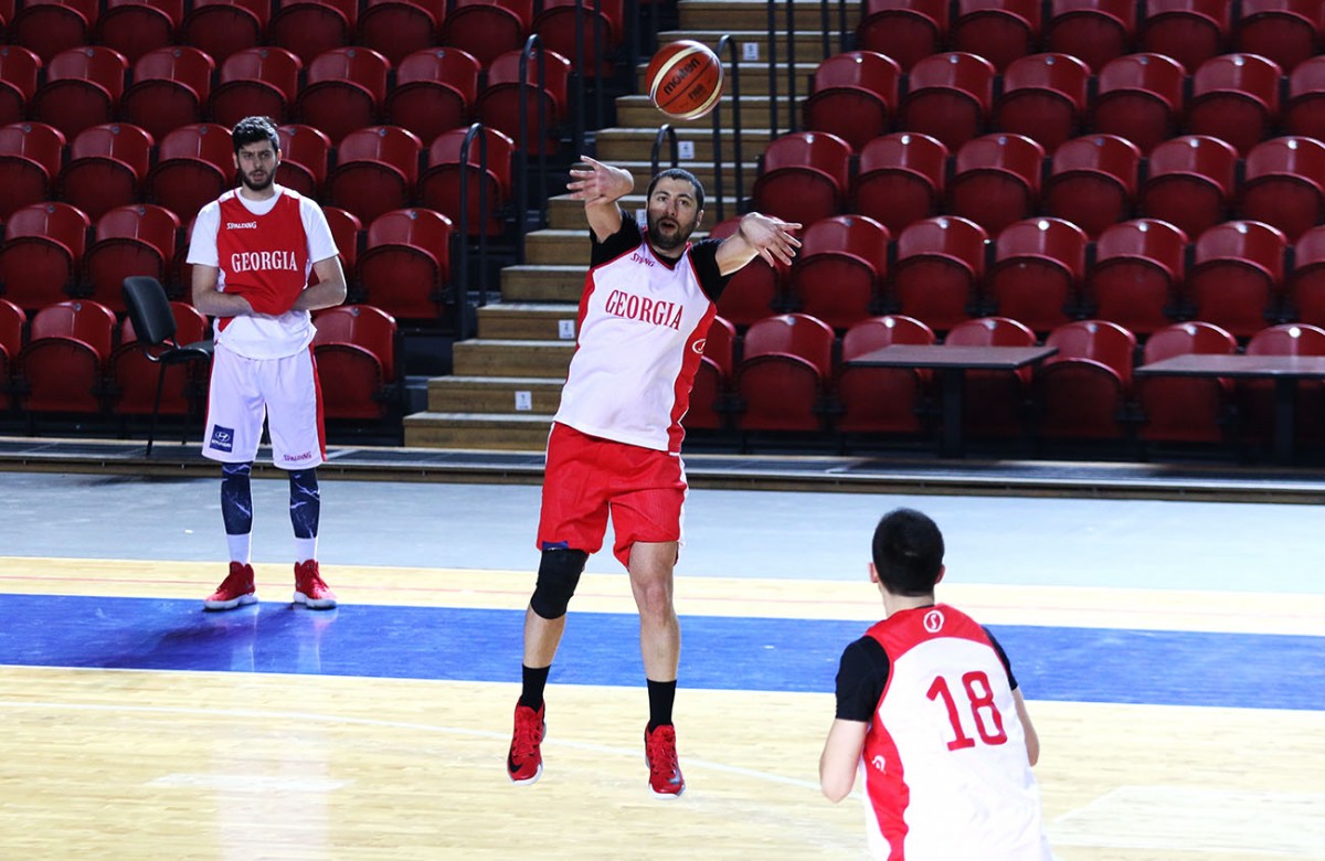 დილის ვარჯიშამდე ნაკრების მოთამაშეები ვაკეში მდებარე ფიტნეს-ცენტრ “ასპრიაში” იმყოფებოდნენ, სადაც ტრენაჟორებზე დაკავდნენ და ამის შემდეგ მიაშურეს სპორტის სასახლეს. ივარჯიშა და კომბინაციების დამუშავებაში აქტიურად მონაწილეობდა ნაკრების ძირითადი გამთამაშებელი, გიორგი ცინცაძე, რომელიც თბილისში გუშინ რუმინეთიდან ჩამოვიდა. მასთან ერთად ივარჯიშა სერბული “მეგა ბიმაქსის” 18 წლის ცენტრმა გოგა ბითაძემ, რომელსაც ადრიატიკის ლიგაში საკმაო სათამაშო დრო აქვს და სხვებთან ერთად მისი დიდად ეიმედებათ მწვრთნელებს.