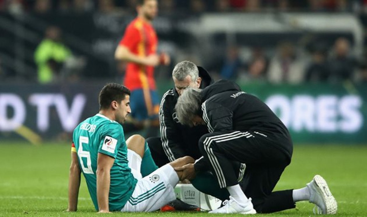 გერმანიის ეროვნული ნაკრებისა და ესპანეთის მატჩის 52-ე წუთზე სამი ხედირამ ტიაგო ალკანტარასთან შეჯახების დროს ტრავმა მიიღო და მოედანი დატოვა.