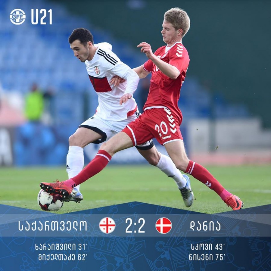 გოლები: 1:0 ხარაიშვილი (31), 1:1 სკოვი (43), 2:1 მიქელთაძე (64), 2:2 კრისტენსენი (75)