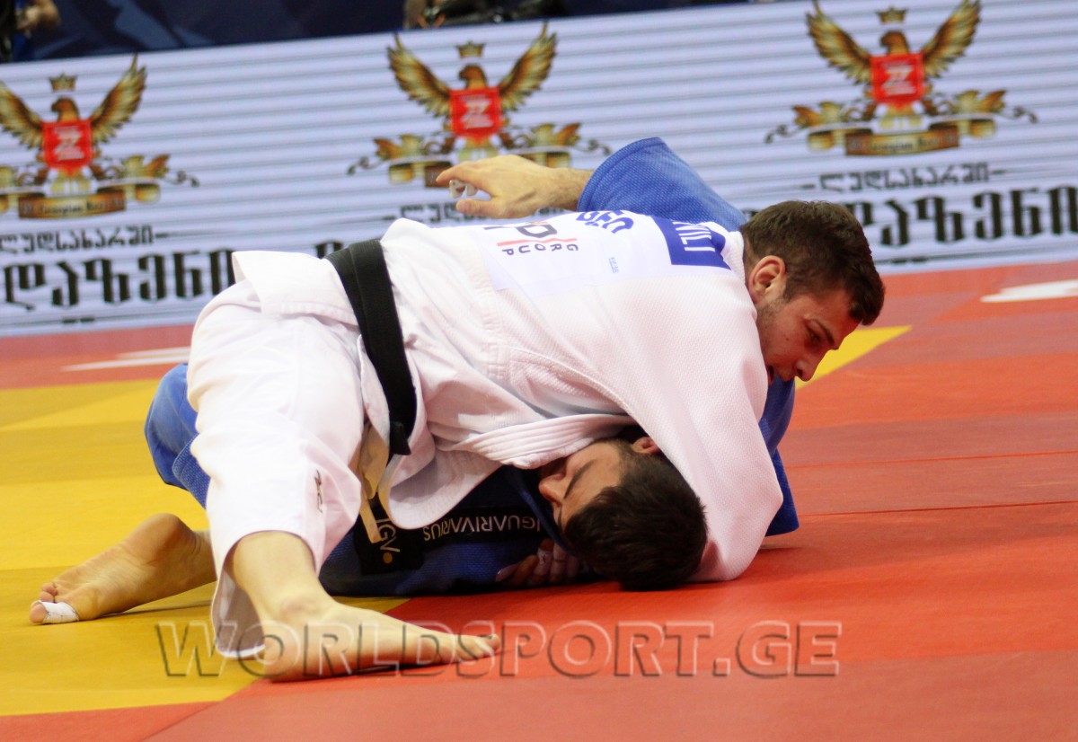 კაცებში, უმსუბუქესი წონითი კატეგორიის მსგავსად, 73 კილოგრამიც ქართული ფინალით დაგვირგვინდა. ერთმანეთს ტურნირზე პირველ ნომრად განთესილი ოლიმპიური (2012) და ევროპის (2013) ჩემპიონი ლაშა შავდათუაშვილი და ახალგაზრდებს შორის ევროპის ვერცხლის პრიზიორი (2012) ფრიდონ გიგანი დაუპირისპირდნენ. შეხვედრა წუთსა და 49 წამს გაგრძელდა. ლაშა შავდათუაშვილმა მეტოქეს ვაზარი გდებით აართვა და სამი შიდოც მიაღებინა.