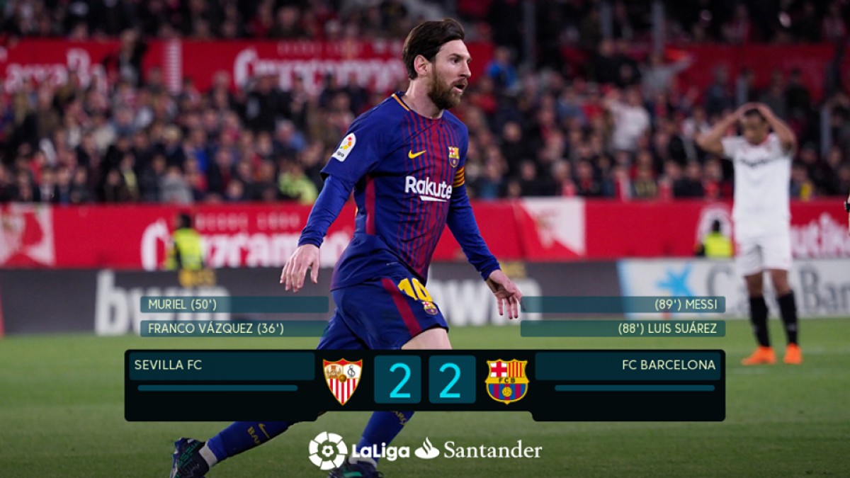 გოლები: 1:0 ფ.ვაზკესი (36), 2:0 მურიელი (50), 2:1 ლ.სუარესი (88), 2:2 მესი (89)