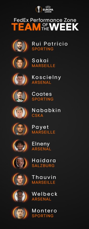 უეფას ოფიციალურმა ვებგვერდმა ევროპა ლიგის კვირის საუკეთესო ნაკრები დაასახელა. მეოთხედფინალური ეტაპის საპასუხო მატჩებიდან "მარსელის", "არსენალის" და "სპორტინგის" სამ-სამი ფეხბურთელი მოხვდა.