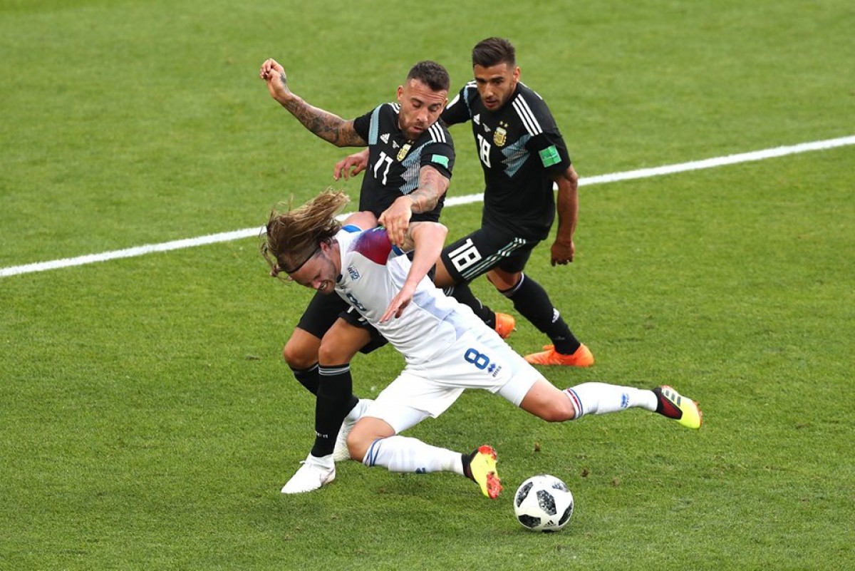 ორი გოლი გავიდა და ორივე პირველ ტაიმში. თუმცა, იქამდე იყო ბიარნასონის ძალიან მაგარი მომენტი, როცა ხელსაყრელი სიტუაციიდან აჩქარდა და კარს ააცილა. მერე, კუნ აგუერომ ითამაშა ჩინებულად (90 წუთში ერთადერთხელ) და გოლიც გავიდა. “სიტის” ფორვარდს მშვენიერი დარტყმა გამოუვიდა და ბედად, მუნდიალის ფინალურ ეტაპზე მისთვის სადებიუტო გოლი შეაგდო. ისლანდიას ყურები არ ჩამოუყრია და ზუსტად 4:15 წუთში გაათანაბრა. სამპაოლის ბიჭების თამაში დაცვაში კრიტიკას იქამდეც არ უძლებდა დ არც გოლის ეპიზოდში ყოფილა გამონაკლისი. ვერც ვილი კაბალიერომ ივარგა გამოსვლისას და ალფრედ ფინბოგასონმა დაუცველი კარი უპრობლემოდ დალაშქრა. როდესაც ისლანდიელმა ფორვარდმა გაიტანა, დროის საზომი 22:49 წუთს აჩვენებდა და ეს გოლი მსოფლიოს ჩემპიონატზე ყველაზე სწრაფად გატანილ სადებიუტო გოლებში მეორე პოზიციას იკავებს. ამაზე სწრაფად პირველი გოლი ისტორიაში, 1994 წელს, ნიგერიელმა რაშიდი იეკინიმ გაიტანა.