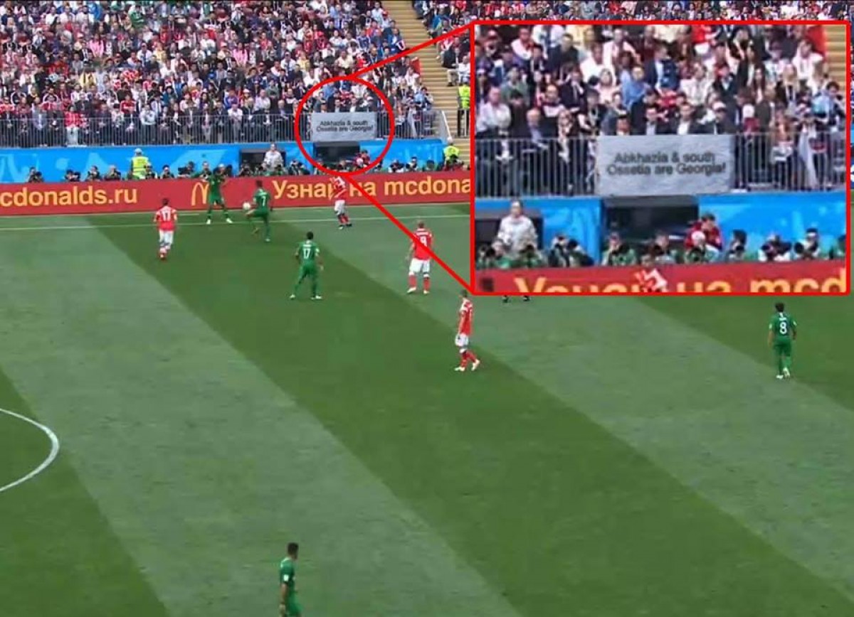 მსოფლიოს 2018 წლის ჩემპიონატის გახსნით მატჩში, რომელიც “ლუჟნიკის” სტადიონზე გაიმართა შემდეგი შინაარსის ბანერი მოექცა ყურადღების ცენტრში: