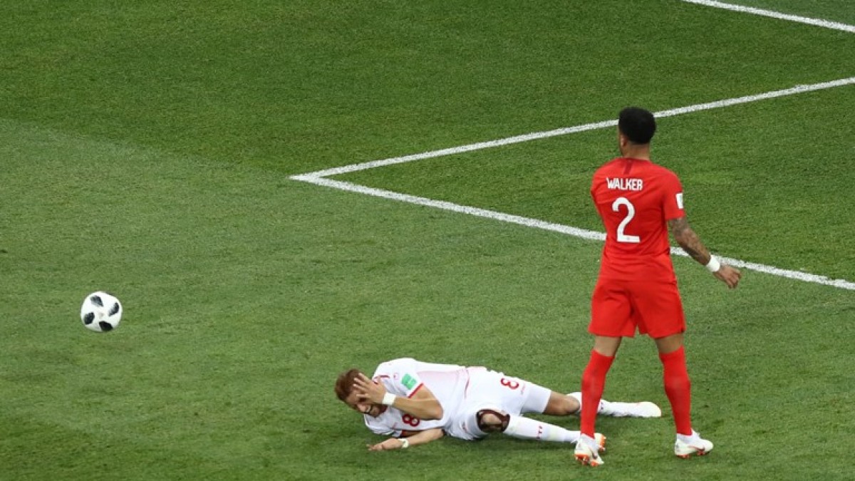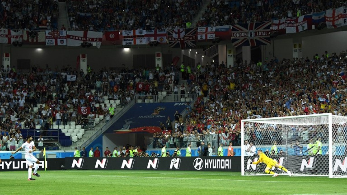 საპასუხოდ, ტუნისი ღირებულს ვერაფერს ქმნიდა, მაგრამ კაილ უოლკერმა შექმნა. “სიტის” უკანახაზელმა ტუნისელი შემტევი უწყინარ სიტუაციაში წააქცია საჯარიმოში და მსაჯმა პენალტი დანიშნა. უმაღლესი საფეხბურთო სასჯელის გოლად გადაქცევა სასიმ მოახერხა და ანგარიშიც გათანაბრდა. საინტერესოა, რომ ინგლისის ნაკრებმა მუნდიალზე თამაშიდან (პენალტების სერიაში არა) თერთმეტმეტრიანი 1998 წლის შემდეგ პირველად გაუშვა (ბოლოს ეს გაბრიელ ბატისტუტას გაეკეთებინა). საუთგეიტის ბიჭებმა ისევ შეუტიეს და ანტრაქტამდე შეეძლოთ მოვლენების სათავისოდ შეცვლა. ყველაზე ახლოს გოლთან ლინგარდი იყო, რომელსაც ხელი ძელმა შეუშალა. ალბიონელები რომ დიდებულად მოქმედებდნენ პირველ ტაიმში სტატისტიკაც დაიმოწმება: საუთგეიტის ბიჭებმა კარში 6-ჯერ დაარტყეს და პირველ ტაიმში ამდენჯერ კარში ბოლოს 1996 წელს, ნახევარფინალში პორტუგალიასთან დაერტყათ.