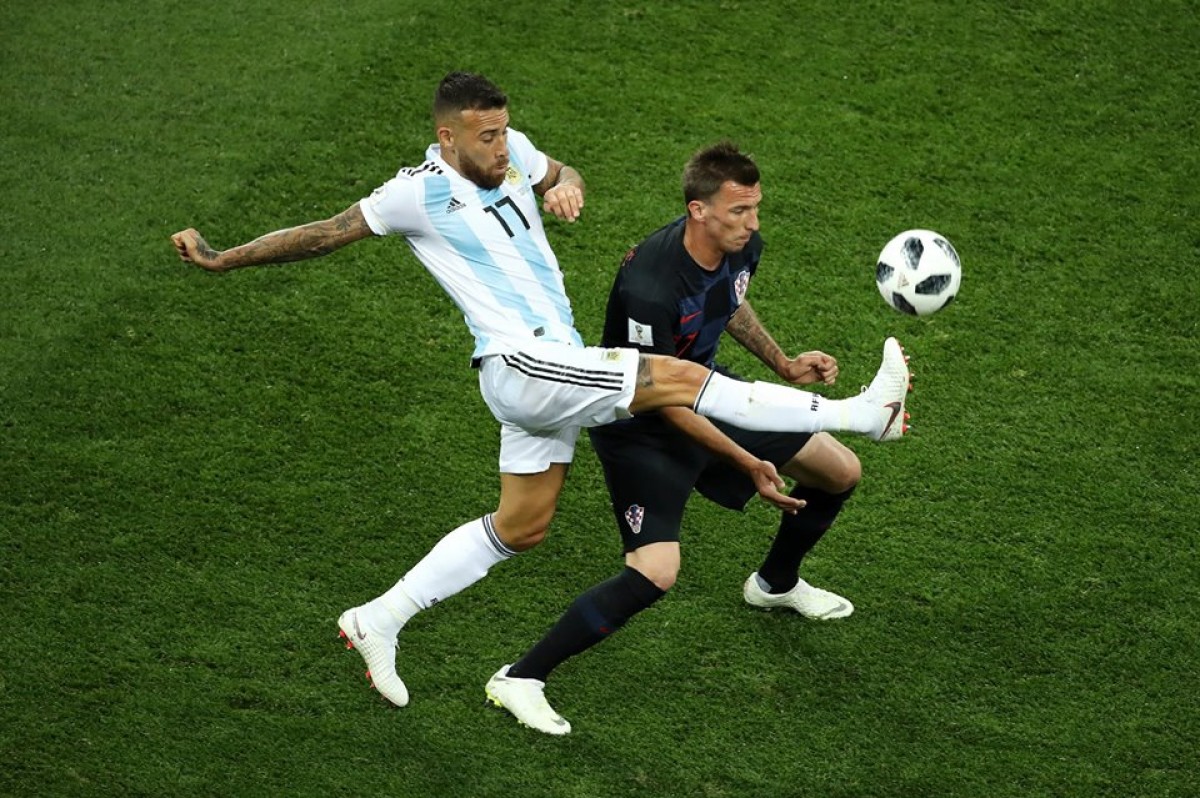 ისლანდიასთან მატჩისგან განსხვავებით, სამპაოლიმ ტაქტიკაც შეცვალა და რამდენიმე ფეხბურთელიც. ისევ თადარიგში დარჩნენ გონსალო იგუაინი და პაულო დიბალა, ხოლო მათ გვერდი ანხელ დი მარიამაც დაუმშვენა. სამაგიეროდ, სამპაოლიმ 3 ცენტრალური მცველით გადაწყვიტა თამაში, მაგრამ რეალურად მინდორზე ამ პოზიციის ერთადერთი მოთამაშე იყო – ნიკოლას ოტამენდი! ჰოდა, ხორვატიასაც მეტი რა უნდოდა, მოწინააღმდეგის დაცვის ხაზში გაინავარდა. ბალკანელებს გატანა უკვე მეორე წუთზე შეეძლოთ, მაგრამ ვილი კაბალიერომ ივარგა. მერე თამაშმა ცოტა მოიწყინა, თუმცა, პირველ ტაიმში გოლის გატანის შანსი ორივე გუნდს მიეცა. ხორვატთაგან მიზანთან ყველაზე ახლოს მარიო მანჯუკიჩი იყო, როდესაც იდეალური პოზიციიდან ბურთს თავი კარგად ვერ დაუხვედრა. თავის მხრივ, სამართლიანობისთვის უცილობლივ უნდა აღინიშნოს, რომ არგენტინას პირველ ტაიმში რეალური მომენტები ჰქონდა. ყველაზე ახლოს გოლთან ენცო პერესი იყო, როდესაც მეტოქის შეცდომის შედეგად ცარიელ კარს ვერ დაუმიზნა. აკუნიას ჩაწოდებული ბურთი კი ხარიხას დაეცა. მაგრამ, ორივე ეპიზოდი უფრო შემთხვევითობის შედეგი იყო, ვიდრე არგენტინელთა გააზრებული მოქმედების. ასეთ კატეგორიაში შეგვიძლია შევიყვანოთ მაქსიმილიანო მესას ეპიზოდი, როდესაც დეიან ლოვრენი ბოლო მომენტში აღუდგა სახიფათო დარტყმას.