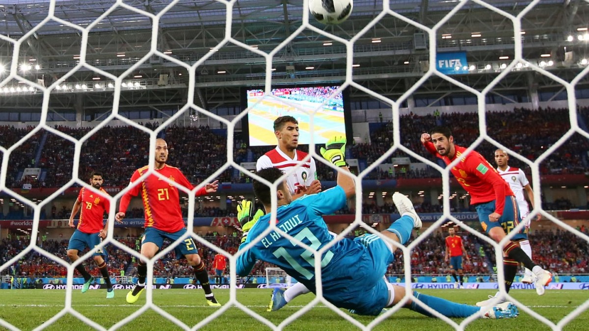 55-ე წუთზე ნორდინ ამრაბატმა შორიდან ძლიერად დაარტყა და ესპანეთს აშკარად გაუმართლა, რადგან ბურთი ძელს მოხვდა, ამ ეპიზოდში დე ხეამ რეაგირებაც კი ვერ შეძლო. 63-ე წუთზე პიკემ კუთხურიდან მოწოდებულზე თავით ააცილა, მანამდე ისკოს დარტყმული ცარიელი კარიდან საისმა გამოიტანა. აღნიშნული მომენტის შემდეგ კვლავ აგრძელებდა ესპანეთი ბურთის ფლობას და ცდილობდა გოლის გატანას, თუმცა 81-ე წუთზე პირიქით მოხდა, კუთხური ზიეშმა შეასრულა, იუსუფ ენ ნასირიმ კი თავით ცხრიანში ზუსტად დაარტყა.