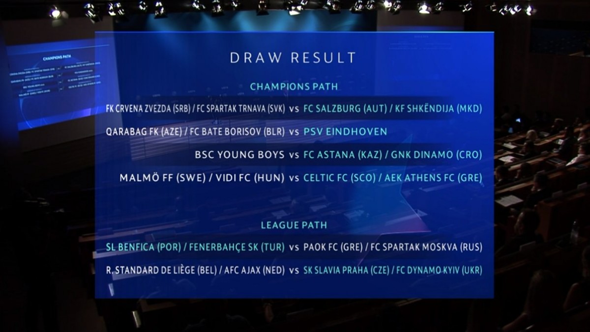 დღეს, უეფას ჩემპიონთა ლიგის პლეი-ოფის წილისყრა გაიმართა. რის შემდგომაც გაირკვა საარაუდო წყვილები და გუნდები შემდეგნაირად დალაგდნენ: