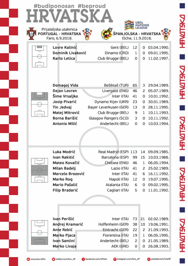 ხორვატიის ნაკრები ერთა ლიგის ეგიდით 6 სექტემბერს, ფაროში, პორტუგალიას, ხოლო 5 დღის შემდეგ ესპანეთს ელჩეში დაუპირისპირდება.
