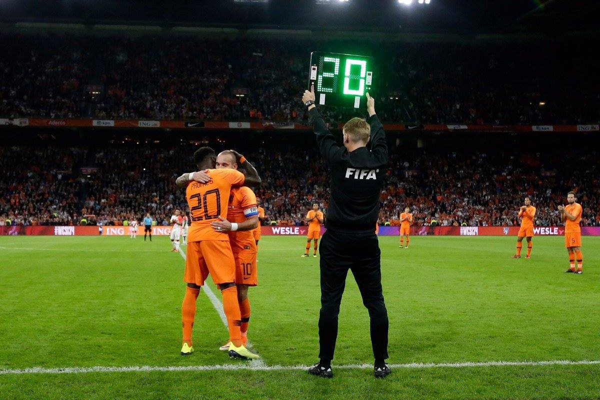 34 წლის ნახევარმცველი უესლი სნეიდერი ჰოლანდიის ნაკრებს დაემშვიდა. სნეიდერისთვის პერუსთან (2:1) გამართული ამხანაგური მატჩი სანაკრებო კარიერაში ბოლო აღმოჩნდა. ნახევარმცველი ძირითად შემადგენლობაში იყო და მწვრთნელმა 69-ე წუთზე კუინსი პრომესში შეცვალა.