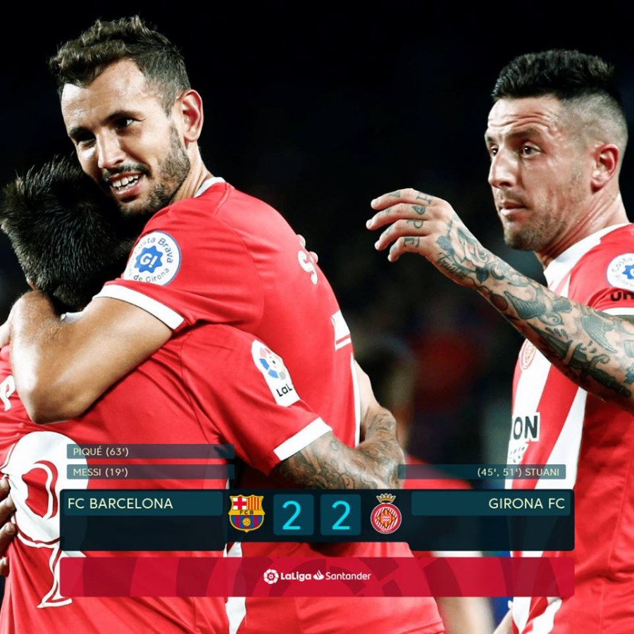 45-ე წუთზე მცველების შეცდომით კრისტიან სტუანიმ ისარგებლა და წონასწორობა აღადგინა, ხოლო ექვს წუთში დამატებაზე იყოჩაღა და დუბლი გაიფორმა. პიკემ თავური დარტყმით 63-ე წუთზე გაათანაბრა და ამის შემდეგ, „ბარსელონა“ მთელი ძალებით მოსაგებად წავიდა, მომენტებიც შექმნა, მაგრამ მეტის გატანა ვეღარ მოახერხა და პირველი ქულები დაკარგა - 2:2.