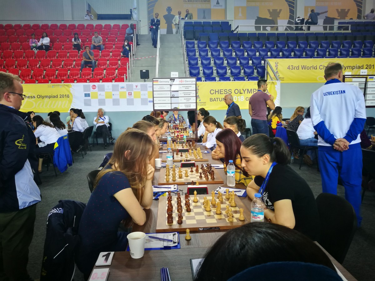 საქართველოს მესამე ნაკრებმა კი გერმანიის გუნდთან ფრეს დაასრულა შეხვედრა - 2:2. პირველ დაფაზე ნინო ხომერიკმა თავისზე მაღალი რეიტინგის მქონე ელიზაბეტ პაენცს მოუგო. მარიამ ჯანიაშვილმა მარცხი იწვნია ფაილიზ ოსმანოდიასთან. ლილე ქორიძემ და თამარ ესაძემ ყაიმებს მიაღწიეს თავიანთზე ძლიერ მეტოქეებთან - შესაბამისად სარა ჰოოლტთან და იუდიტ ფუშთან.
