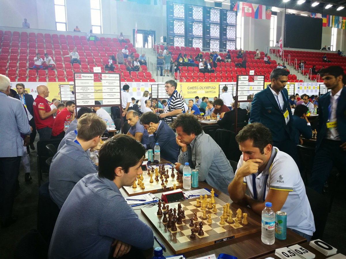 საქართველოს პირველ ნაკრებს რაც შეეხება, ის შეცვლილი შემადგენლობით გამოვიდა ნორვეგიის ნაკრების წინააღმდეგ. ბაადურ ჯობავა საქართველოს მოქალაქის სტატუსის მქონე ბულგარელმა დიდოსტატმა ივან ჩეპარინოვმა შეცვალა, რომლის რეიტინგი 2715-ია. მეორე ტურის დაწყებამდე საქართველოს პირველი ნაკრების კაპიტანმა ქალბატონმა ნინო გურიელმა worldsport.ge-სთან საუბარში აღნიშნა, რომ ივან ჩეპარინოვი მნიშვნელოვნად გააძლიერებს გუნდს და ეს შედეგებშიც აისახება. „ათეულში მოხვედრა დიდი წარმატება იქნება, ბოლომდე უნდა ვიბრძოლოთ, რათა მაქსიმალური შედეგი მივიღოთ.“