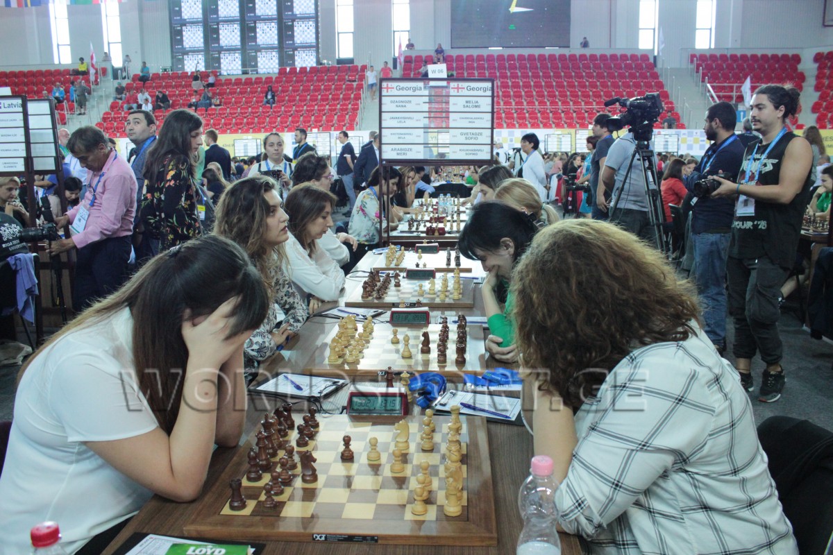 გუნდების ლიდერები - ნანა ძაგნიძე (2509) და სალომე მელია (2391) ყაიმზე შეთანხმდნენ. ლელა ჯავახიშვილმა (2475) - ინგა ჭარხალაშვილს (2317) მოუგო. მესამე დაფაზე ბელა ხოტენაშვილმა (2469) და სოფო გვეტაძემ (2325) ქულა გაიყვეს. მერი არაბიძე (2404) კი სოფიკო ხუხაშვილს (2301) დაუზავდა. საბოლოოდ, საქართველოს პირველმა ნაკრებმა 2,5:1,5 იმარჯვა.