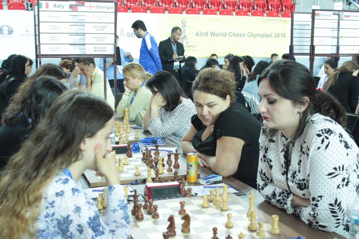 16-16 ქულა აქვთ და მეორე-მეოთხე ადგილებს იყოფენ უკრაინის, აშშ-სა და სომხეთის ნაკრებებს. ასევე სამ გუნდს - რუსეთს, საქართველოს პირველ ნაკრებსა და აზერბაიჯანს აქვთ - 15-15 ქულა და შესაბამისად მეხუთე-მეშვიდე ადგილებზე კოეფიციენტის გათვალისწინებით, სწორედ ასეთი თანმიმდევრობით არიან განლაგებულნი. შემდეგ 14-14 ქულით 13 გუნდი მოდის და მათ შორისაა საქართველოს მოჭადრაკე ქალთა მეორე ნაკრები, რომელსაც აქტივში 6 მოგება, 2 ფრე და 2 წაგება გააჩნია.