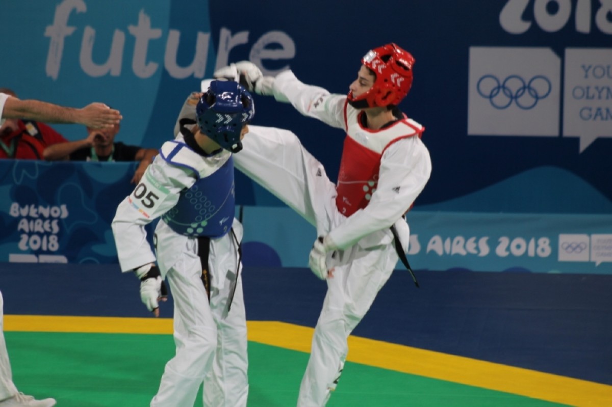 ტაეკვონდში ზურაბ კინწურაშვილმა (48 კგ.) პირველივე შეხვედრა დათმო (11:30) კორეელ იმ სონგბინთან და მედლებისთვის ბრძოლას გამოეთიშა. საბოლოოდ კორეელი სპორტსმენი თამაშების ბრინჯაოს პრიზიორი გახდა, ოქროს მედალი კი რუსმა დმიტრი შიშკომ მოიგო.