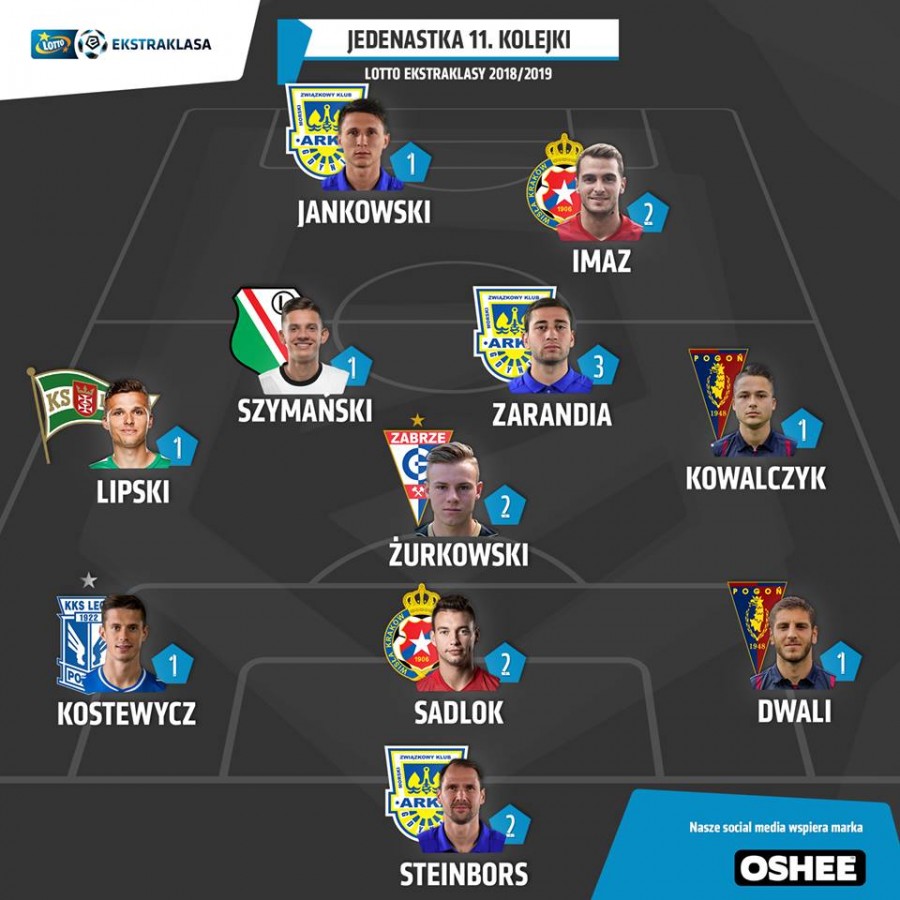 პოლონეთის ექსტრაკლასას მე-11 ტურის სიმბოლურ ნაკრებში ერთბაშად ორი ქართველი მოხვდა - ლაშა დვალი და ლუკა ზარანდია.
