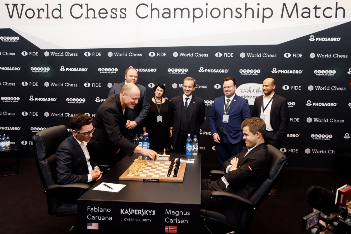 ინგლისის დედაქალაქ ლონდონის Victoria and Albert Museum-ში სტარტი აიღო მსოფლიო ჩემპიონის ტიტულისთვის მატჩმა მოქმედ ჩემპიონ მაგნუს კარლსენსა (ნორვეგია) და ტიტულის პრეტენდენტ ფაბიანო კარუანას (აშშ) შორის.