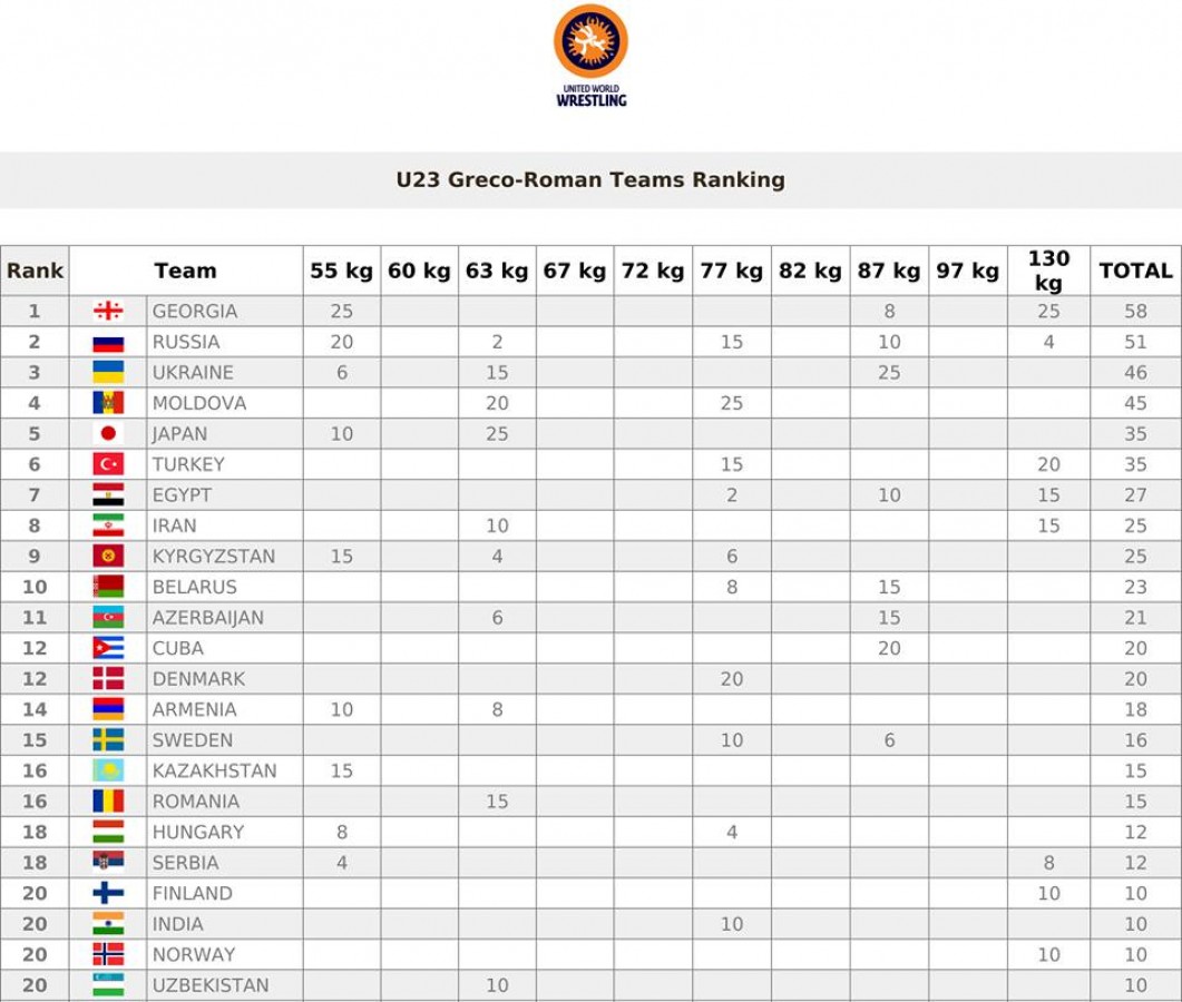 ამ დროისთვის, საქართველოს ნაკრების მონაგარი 58 ქულაა, უახლოეს მდევარ რუსეთს 51 ქულა აქვს, შემდეგ კი, უკრაინა (46), მოლდოვა (45), იაპონია (35) და თურქეთი (35) მოდიან.