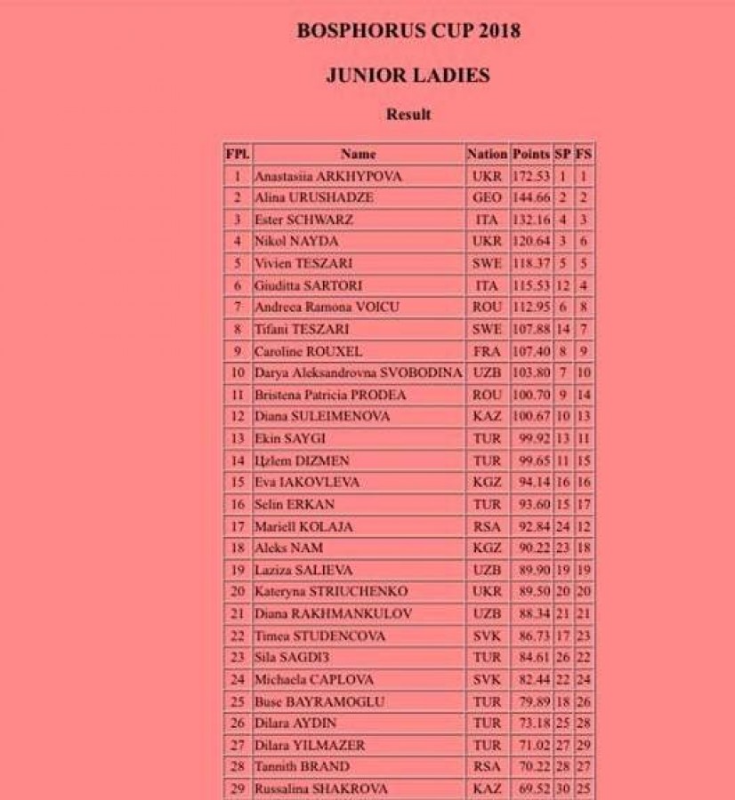 საკმაოდ წარმატებულად იასპარეზა ალინა ურუშაძემაც, რომელსაც 13 ქვეყნის 29 მონაწილეს შორის 144. 66 ქულით მეორე ადგილი ერგო და მხოლოდ უკრაინელ გოგონას ჩამორჩა.