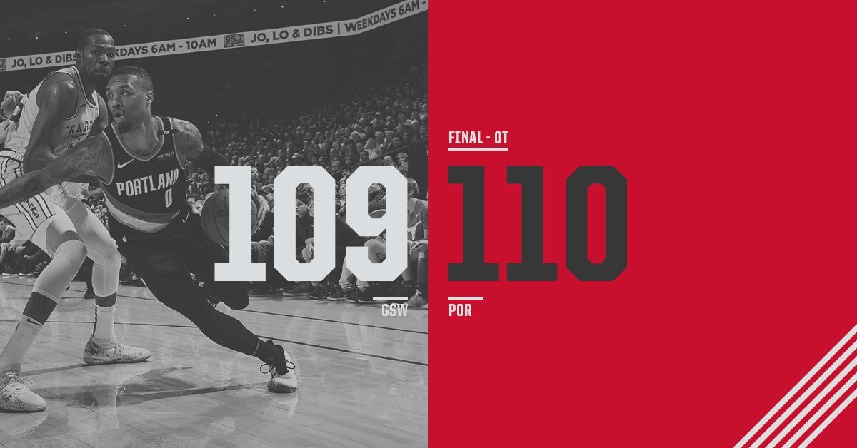 „გოლდენ სტეიტი“ შინ „პორტლენდს“ დაუპირისპირდა და მოულოდნელად 109:110 დამარცხდა. მატჩი გარდამავალი უპირატესობით მიმდინარეობდა. ძირითადი დრო 102:102 დასრულდა. ოვერტაიმში გადამწყვეტი მატჩის დასრულებამდე 7 წამით ადრე დამიენ ლილარდის ჩაგდებული სამქულიანი გამოდგა. ბოლო წამზე დურანტმა ორქულიანი ააცილა. „გოლდენ სტეიტი“ 23 მოგებით და 13 წაგებით დასავლეთ კონფერენციაში მეორე ადგილზეა.
