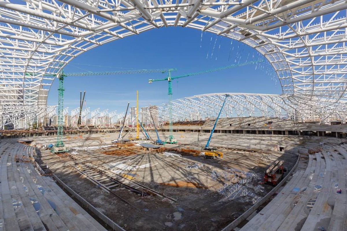 ბათუმში მშენებარე საფეხბურთო სტადიონზე ლითონის კონსოლური ფერმების მონტაჟი დასასრულს უახლოვდება. პარალელურად მიმდინარეობს გადახურვითი სამუშაოები.