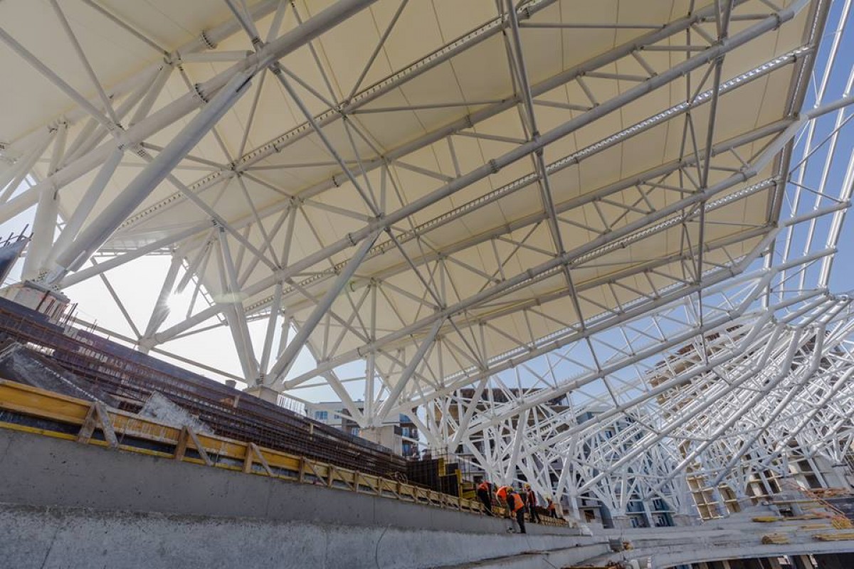 სტადიონის გადახურვა სამხრეთ ტრიბუნიდან დაიწყო და ამ საქმისთვის ლითონის გრძივებზე გერმანული წარმოების კომპოზიტური მემბრანა მონტაჟდება, რაც ვიზუალურ ესთეტიკასთან ერთად მდგრადობის გარანტიაც გახლავთ.