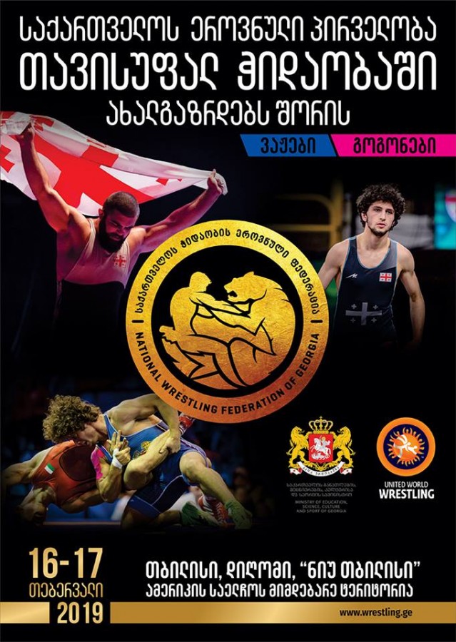 თავისუფალი სტილით ჭიდაობასა და ქალთა ჭიდაობაში, ახალგაზრდებს შორის, საქართველოს 2019 წლის პირველობა დაიწყო. დიღომში, „ნიუთბილისში" მდებარე ფრენბურთის არენაზე, ორდღიანი შეჯიბრების პირველ დღეს - 16 თებერვალს სულ მედლების შვიდი კომპლექტი გათამაშდა.